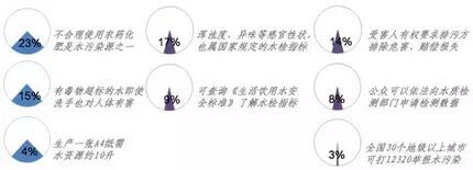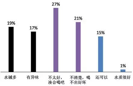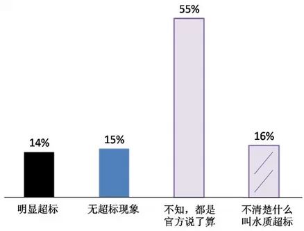 对水质表示满意的人很少,占全体被访者的16%,其中15%觉得“水质还可以”,只有1%觉得“水质很好”。