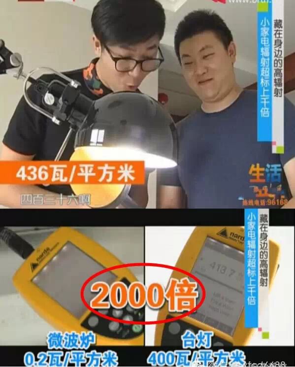工程师笑而不语,把检测工具对着台灯伸了过去,检测发现436瓦/平方米!小小台灯要逆天吗?比微波炉辐射整整高了2000倍!